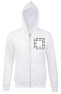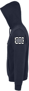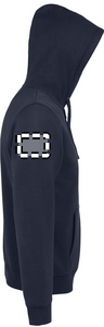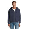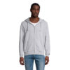SOL'S SPIKE MÆND. Hættetrøje med lynlås til mænd, 80% ringspundet bomuld - 20% polyester Børstet foring, Yderside: 100% bomuld FLEECE 280 LSF (Low Shrinkage Fabric), Indstillede ærmer, 2 poselommer foran, Klippet og syet, Foret hætte med tone-i-tone trækbånd, 2x2 ribstrikkede manchetter og kant. Halvmåne indvendig krave, Tapet i nakken, YKK lynlås. OEKO-TEX®. Kun solgt med tryk.
