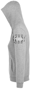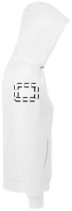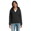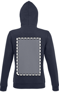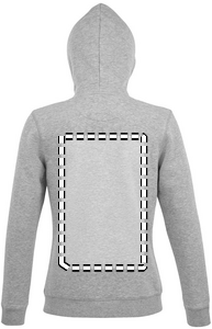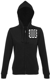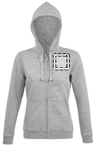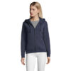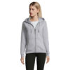 SOL'S SPIKE DAME. Hættetrøje med lynlås til kvinder, 80% ringspundet bomuld - 20% polyester Børstet foring, Yderside: 100% bomuld FLEECE 280 LSF (Low Shrinkage Fabric), Indstillede ærmer, 2 poselommer foran, Klippet og syet, Foret hætte med tone-i-tone trækbånd, 2x2 ribstrikkede manchetter og kant. Halvmåne indvendig krave, Tapet i nakken, YKK lynlås. OEKO-TEX®. Kun solgt med tryk.