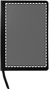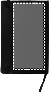 A5 notesbog med 96 sider kvadreret papirsider lukket med et elastikbånd.