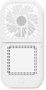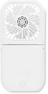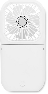 Bærbar, foldbar ventilator med justerbar nakkerem. 3 hastighedsindstillinger. Kan også bruges som bordventilator, når den er foldet sammen. Genopladeligt 3000 mAh-batteri med USB-port.