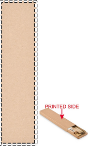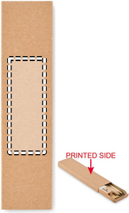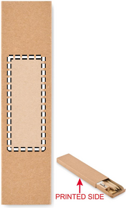 Papiræske med 3 spidsede blyanter, 1 træspidser, 1 viskelæder og 1 trælineal.