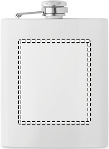 Slank lommelærke i genbrugt rustfrit stål (90% genbrugt rustfrit stål og 10% rustfrit stål) med sublimeringslag. Enkeltvæg. Kapacitet: 180 ml.