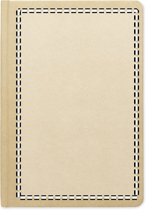 A5-notesbog med hårdt omslag og 160 linjerede papirsider (80 ark) i PLA-sukkerrør (65% sukkerrørsfibre/35% papir). Indbundet i kasse.