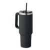 Dobbeltvægget tumbler i genanvendt rustfrit stål med sugerørslåg inklusive sugerør af PE. Kapacitet 1200 ml. (90 % genanvendt rustfrit stål og 10 % rustfrit stål).