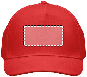5-panels baseballkasket i bomuldstwill 180 gr/m² med justerbar velcrolukning.