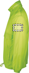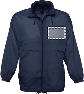 SOL'S SURF, Unisex vandafvisende windbreaker, 100% polyamid 210T, åbning med lynlås, hætte med snoretræk foldet ind i kraven, 2 udvendige lommer med lynlås, ''In Bag'' foldesystem med elastiske bånd omkring taljen, elastiske manchetter, ventilationsøjer. Om matchende størrelser, se venligst størrelsestabellen i produktdokumentationsafsnittet.