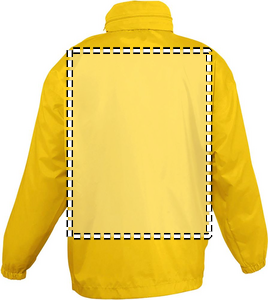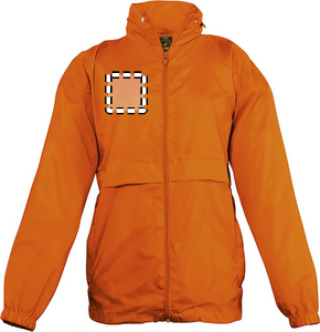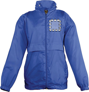 SOL'S SURF Windbreaker til børn med lynlås. En af markedets billigste vindjakker. Vindtæt og vandafvisende. To lommer med lynlås, hætte med løbebånd skjult i kraven med lynlås, løbebånd i bunden, elastik ved manchetterne, ventilationskvalitets kvalitet: 210 g / m² 100% nylon 210T, vandafvisende. Sælges kun med tryk. Størrelser - 5-6 år: 105-116 cm (XL), 7-8 år: 117-128 cm (XXL), 9-11 år: 129-141 cm (3XL), 12-14 år: 142-164 cm (4XL), 15-16 år: 165-176 cm (5XL).