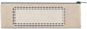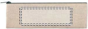 Kontorsæt 6 dele. Inkluderer en jute og bomulds pose, bambus linial, blyantspidser, viskelæder, papirblyant og kuglepen med kartonkrop og blåt blæk.