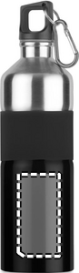 Drikkeflaske i rustfrit stål med gummihåndtag og karabinkrog. 750 ml kapacitet. Lækagefri. Da dette er en enkeltvægget flaske, kan der stadig forekomme varmeoverførsel.