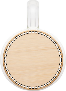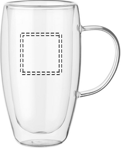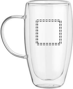 Dobbeltvægget krus af borosilikatglas med hank og bambuslåg. Kapacitet: 450 ml.