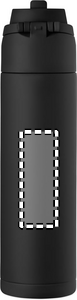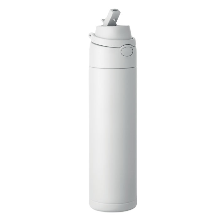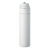 Enkeltvægget flaske af genanvendt rustfrit stål (90 % genanvendt rustfrit stål og 10 % rustfrit stål). Med 2-i-1-sugerør og PP-låg med håndtag. Lækagefri. Kapacitet: 750 ml.