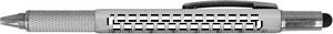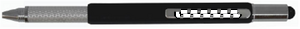 Twist action multi kuglepen pen i ABS med linial og stylus. Dertil dobbelt skruetrækker stjerne- og almindelig.Sort blæk.