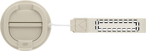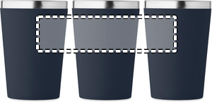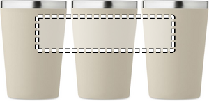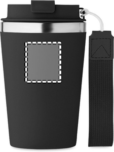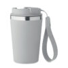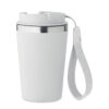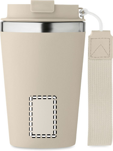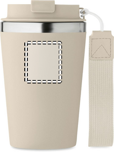 Dobbeltvægget drikkedunk i genanvendt rustfrit stål (90 % genanvendt rustfrit stål og 10 % rustfrit stål) med yderlag af PP og håndledsrem af RPET. Kapacitet: 350 ml.
