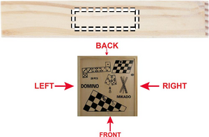 Trææske med spil herunder domino, skak, ''draft''og Mikado.