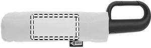 Sammenklappelig 21'' vindtæt paraply med fuldt sortbelagt glasfiberstel med 2 sektioner. Ribber i glasfiber. 190T RPET pongee-paneler. D-formet karabinhåndtag med gummifinish. Automatisk åbning og lukning. Inkluderer pose