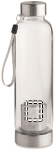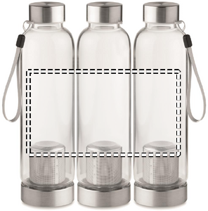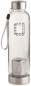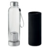 Enkeltvægget højborosilicat glasflaske med theinfuser og neoprenpose. Kapacitet 500 ml. Ikke egnet til drikkevarer med kulsyre. Lækagefri.