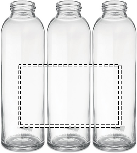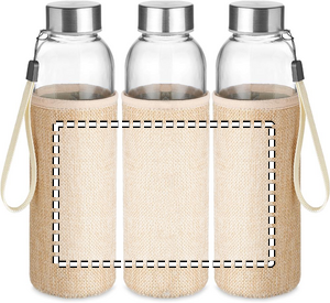 Flaske i glas med sleeve af jute/neopren. Kapacitet: 500 ml. Flasken kan tåle opvaskemaskine uden tryk. Egner sig ikke til væsker med kulsyre. Lækagefri.