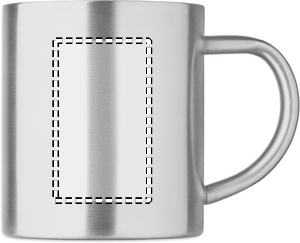 Dobbeltvægget krus af genanvendt rustfrit stål (90 % genanvendt rustfrit stål og 10 % rustfrit stål). Kapacitet: 260 ml.