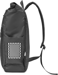 15 tommer rolltop laptop rygsæk i 300D RPET polyester. Stor frontlomme med lynlås, skjult sidelomme med lille karabinhage indvendig. Karabinhagen er ikke til klatring (ikke professionel brug).