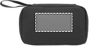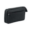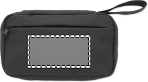 Toilettaske i 600D RPET med PU-belægning, RPET-net og 210D RPET-foring. Har hovedlomme med lynlås foran, indvendige netlommer og åbne lommer.