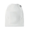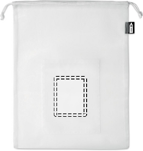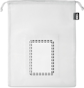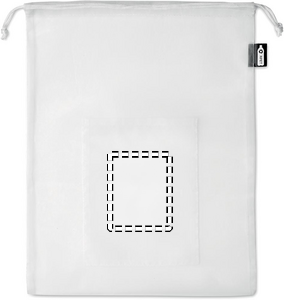 Food bag in mesh RPET with front pocket and white PP drawstring cord on top.