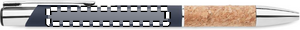 Trykknappen i aluminium med korkgreb. Blåt blæk.