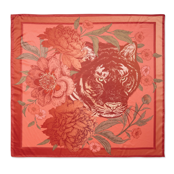 Sjal i genbrugt satinpolyester med mønster.