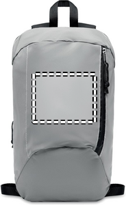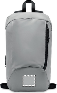 Rygsæk med fronten i højreflekterende polyester med lynlås med udvendig lomme og til komfort en polstret bagdel i 600D polyester.