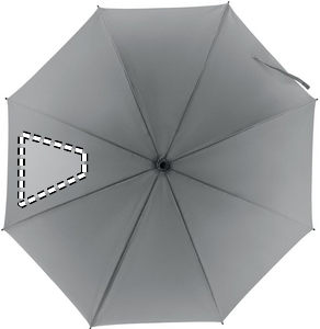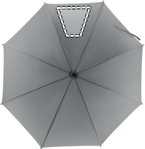 23 tommers vindtæt paraply i højreflekterende polyester (190D) med fiberglasskaft og -ribber. Sorte plastikspidser og -top. Sort gummieret greb. Manuel åbning og -lukning.