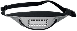 Bæltetaske med fronten i højreflekterende polyester, med justerbar polyesterrem.