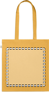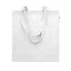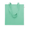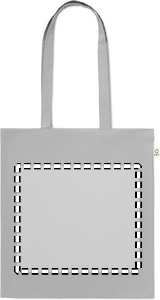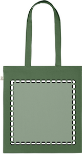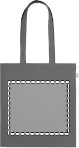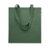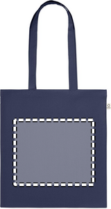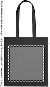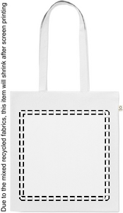 Indkøbspose af genanvendt bomuld (70 % genanvendt bomuld og 30 % RPET) med lange hanke. 140 gr/m². Denne vare kan muligvis krympe efter påtrykning.