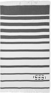 Hammam- eller strandhåndklæde af genbrugte stoffer. 70% genanvendt bomuld og 30% genanvendt polyester SEAQUAL® YARN. 300 gr/m². 100x170 cm. SEAQUAL INITIATIVE arbejder med havoprydninger over hele verden for at give værdi til det affald, de de genvinder. Fremstillet i EU.
