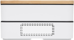 Madkasse i genavendt PP med to etager med aftagelig skillevæg og 3 bestikredskaber med fastgørelsesbånd af polyester med bambuslåg. Låget har en telefonstativ funktionalitet. Kapacitet: 400 ml (2x).