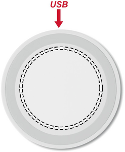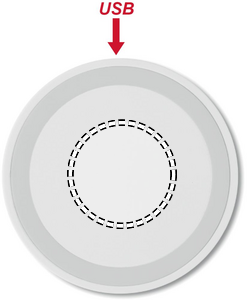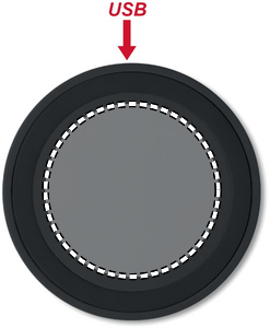 Trådløs oplader. Tilslut enheden til din computer, læg smartphone på den for at starte opladningen. Lyser ved opladning. Udgang: DC5V/1A (5W).