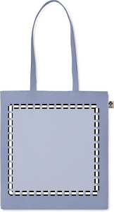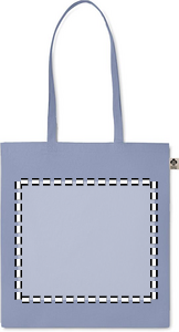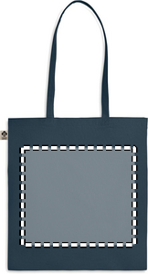 Pose i økologisk bomuld med lange håndtag. 140 gr/m². Dette produkt er OEKO-TEX® STANDARD 100-certificeret.